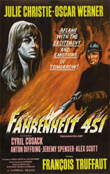 Montag (Oskar Werner), a regimented fireman in charge of burning the forbidden volumes, meets a revolutionary school teacher who dares to read. Suddenly he finds himself a hunted fugitive, forced to choose not only between two women, but between personal safety and intellectual freedom. Truffaut’s first English language production is an eerie fable where mankind becomes the ultimate evil.